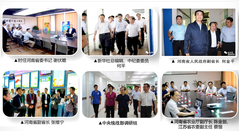 支农宝的发展得到各级领导的关心和支持。时任河南省委书记谢伏瞻,河南省副省长何金平,新华社总编、中纪委委员何平,国家发改委调研组,河南省政协副主席、工商联主席梁静,团省委书记王艺,全国青联主席李荣,中央统战部调研组,市委、市政府和睢阳区委区政府主要领导等都曾莅临支农宝调研,并给予很高的评价。